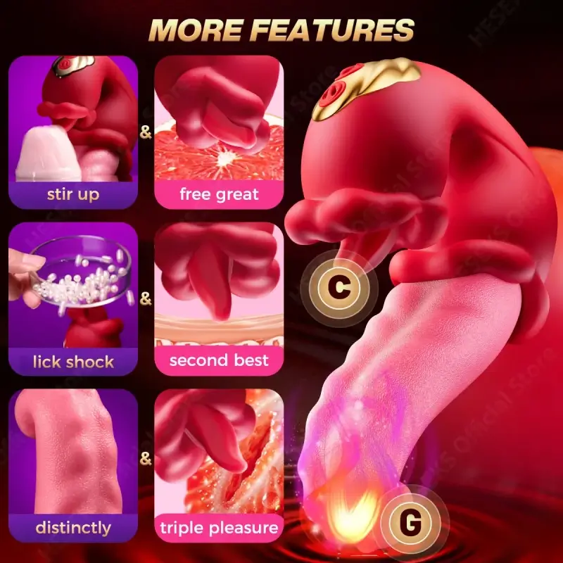 10 different modes of combined tongue-licking, tapping, and vibration, ranging from soft and slow to more intense, ravenous tapping that will bring you to stifling orgasms.