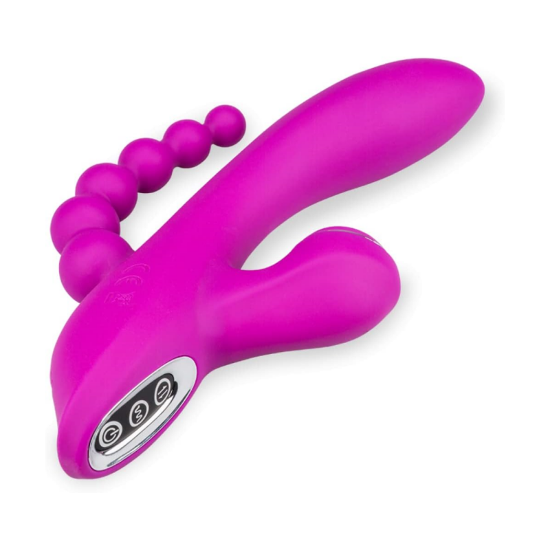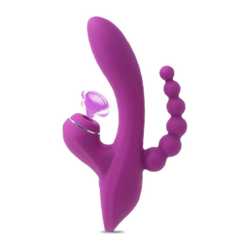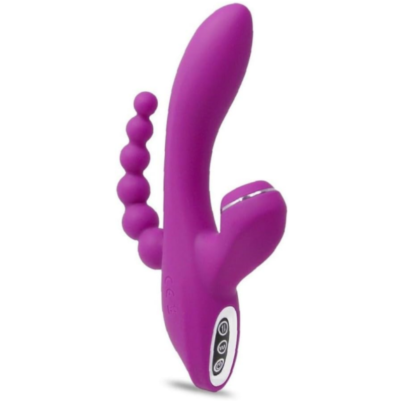 Fill yourself up with this decadent triple-headed bunny vibrator with 2 motors & clit sucker.